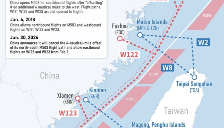 Namun, Tiongkok mengumumkan perubahan pada jaringan penerbangan tersebut tanpa berkonsultasi terlebih dahulu dengan Administrasi Penerbangan Sipil Taiwan, yang merupakan satu-satunya otoritas yang bertanggung jawab atas “Wilayah Informasi Penerbangan Taiwan”.