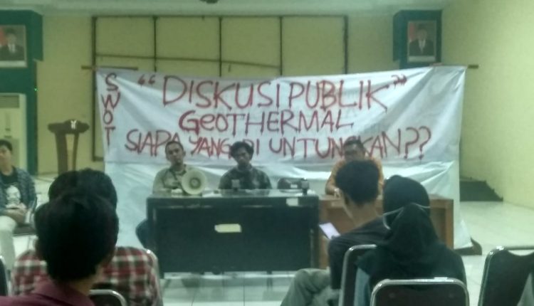 Kini, Sanerikat Mahasiswa Sosialis Demokratik (SWOT) Banten mengadakan diskusi publik terkait perkembangan pembangunan Geothermal yang bertajuk ‘Geothermal, Siapa yang Diuntungkan?’. Kamis (25/7/2019).