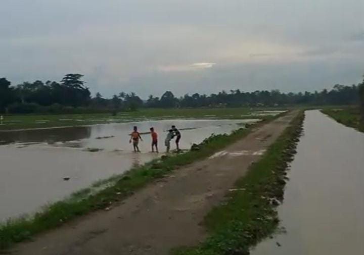 Ratusan hektare sawah terdampak, dan sebagian di antaranya dipastikan tidak lagi bisa dipanen akibat rusaknya tanaman padi yang terendam terlalu lama.