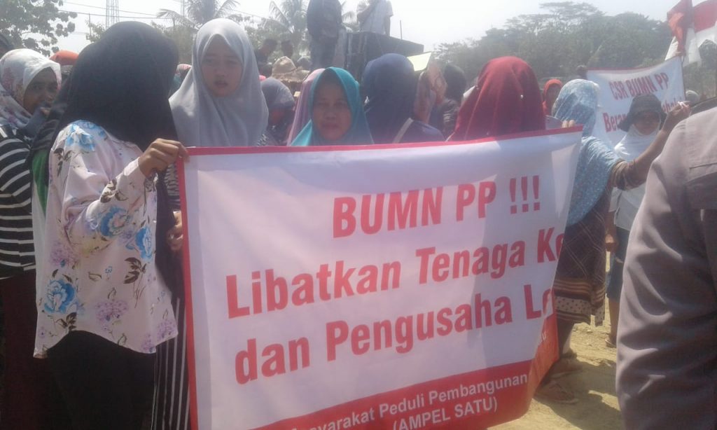 Dalam orasinya Achmad Syarif, meminta kepada PT Pembangunan Perumahan (PT PP) hendaknya melibatkan warga dan pengusaha lokal dalam pembangunan jalan Tol Serang-Panimbang.