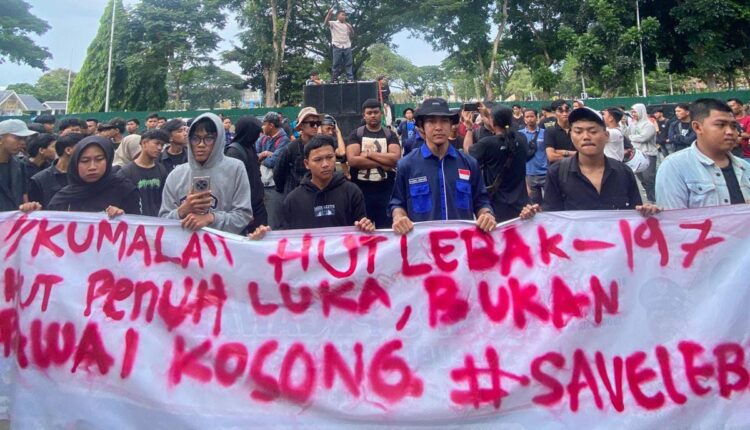 LEBAK – Aksi unjuk rasa gabungan mahasiswa dari Keluarga Mahasiswa Lebak (KUMALA), Pergerakan Mahasiswa Islam Indonesia (PMII), Ikatan Mahasiswa Lebak (Imala), Gerakan Mahasiswa Nasional Indonesia (GMNI), dan Pergerakan Sobang mewarnai peringatan HUT Kabupaten Lebak ke-197.