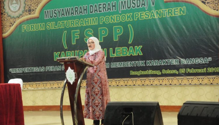 LEBAK – Bupati Lebak Iti Octavia Jayabaya bersama Wakil Bupati Lebak Ade Sumardi menghadiri sekaligus membuka Musyawarah Daerah (Musda) V Forum Silaturahmi Pondok Pesantren (FSPP) Kabupaten Lebak Masa Khidmat 2019 – 2024 di Latansa Mashiro Hall, Rangkasbitung, Lebak, Banten, Selasa (5/2/2019).