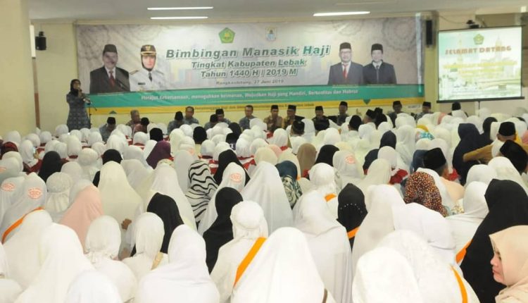 LEBAK – Bupati Lebak Iti Octavia Jayabaya membuka Bimbingan Manasik Haji Tingkat Kabupaten Lebak Tahun 1440 H/ 2019 M yang juga dihadiri pejabat Kantor Wilayah Kementrian Agama Provinsi Banten serta para Kepala Kantor Urusan Agama (KUA) Kabupaten Lebak, yang bertempat di Masjid Al’ a’raaf Rangkasbitung, Kamis (27/6/2019).