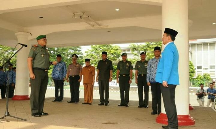 LEBAK – Dandim 0603 Lebak Letkol Arh Syafa Susanto memimpin upacara peringatan Hari Sumpah Pemuda ke-90 tahun 2018 di Alun-Alun Rangkasbitung, Kabupaten Lebak, Senin (29/10/2018).