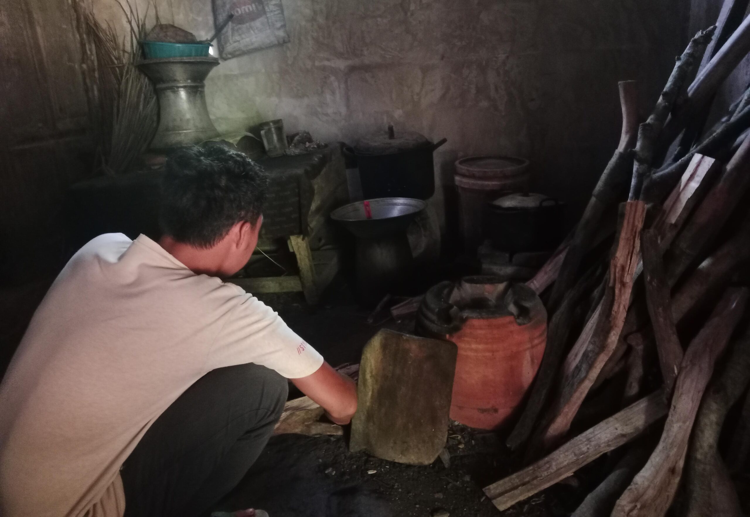 Akibat sulitnya mendapatkan gas elpiji, banyak warga Cibadak terpaksa beralih menggunakan kayu bakar sebagai alternatif.