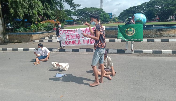 LEBAK – Keluarga Mahasiswa Lebak (Kumala) Komisariat UIN SMH Banten gelar aksi teatrikal di depan Kantor Bupati dalam rangka mengkritisi kinerja Pemerintah Kabupaten Lebak.