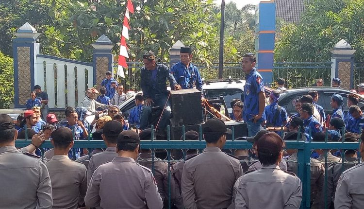 LEBAK – Puluhan anggota organisasi masyarakat Badak Banten Kabupaten Lebak menggelar aksi unjuk rasa di depan Kantor Dinas Pemberdayaan Masyarakat dan Desa (DPMD) Kabupaten Lebak. Kamis (8/8/2019).