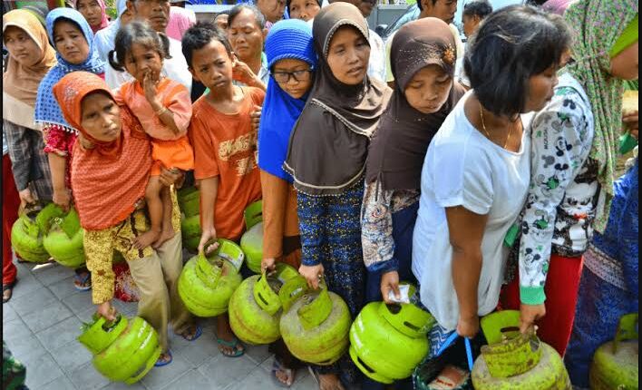 Ibu-ibu rumah tangga harus keliling kampung untuk mencari tabung gas 3 kg, yang kini lebih langka dari ucapan “aku sayang kamu” dari pasangan yang gengsi.