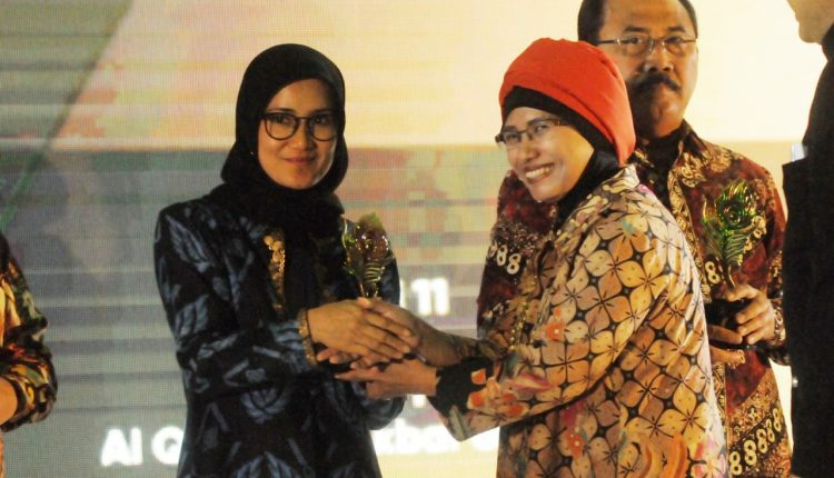 Tropy penghargaan diserahkan Asisten Deputi Bidang Pemasaran Kementerian Pariwisata Masruroh dan diterima Bupati Lebak Iti Octavia Jayabaya di Hotel Sahid Jakarta, Kamis (22/11/18)