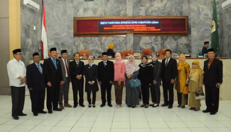 LEBAK – Bupati Lebak Iti Octavia Jayabaya bersama Wakil Bupati Lebak Ade Sumardi menghadiri pelantikan Anggota Dewan Perwakilan Rakyat Daerah (DPRD) Lebak Pergantian Antar Waktu (PAW) Fraksi Partai Amanat Nasional (PAN) sisa masa jabatan 2014-2019 di Gedung DPRD Lebak, Senin (21/1/2019).