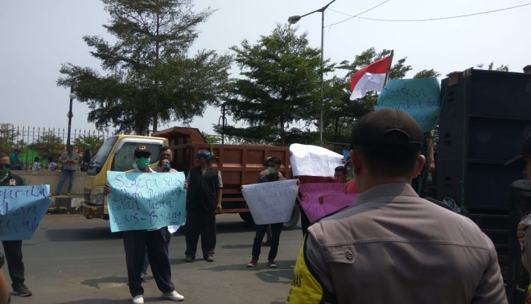 Pembangunan Jalan Mangkra, Warga Unjuk Rasa di Depan Kantor Kecamatan Wanasalam