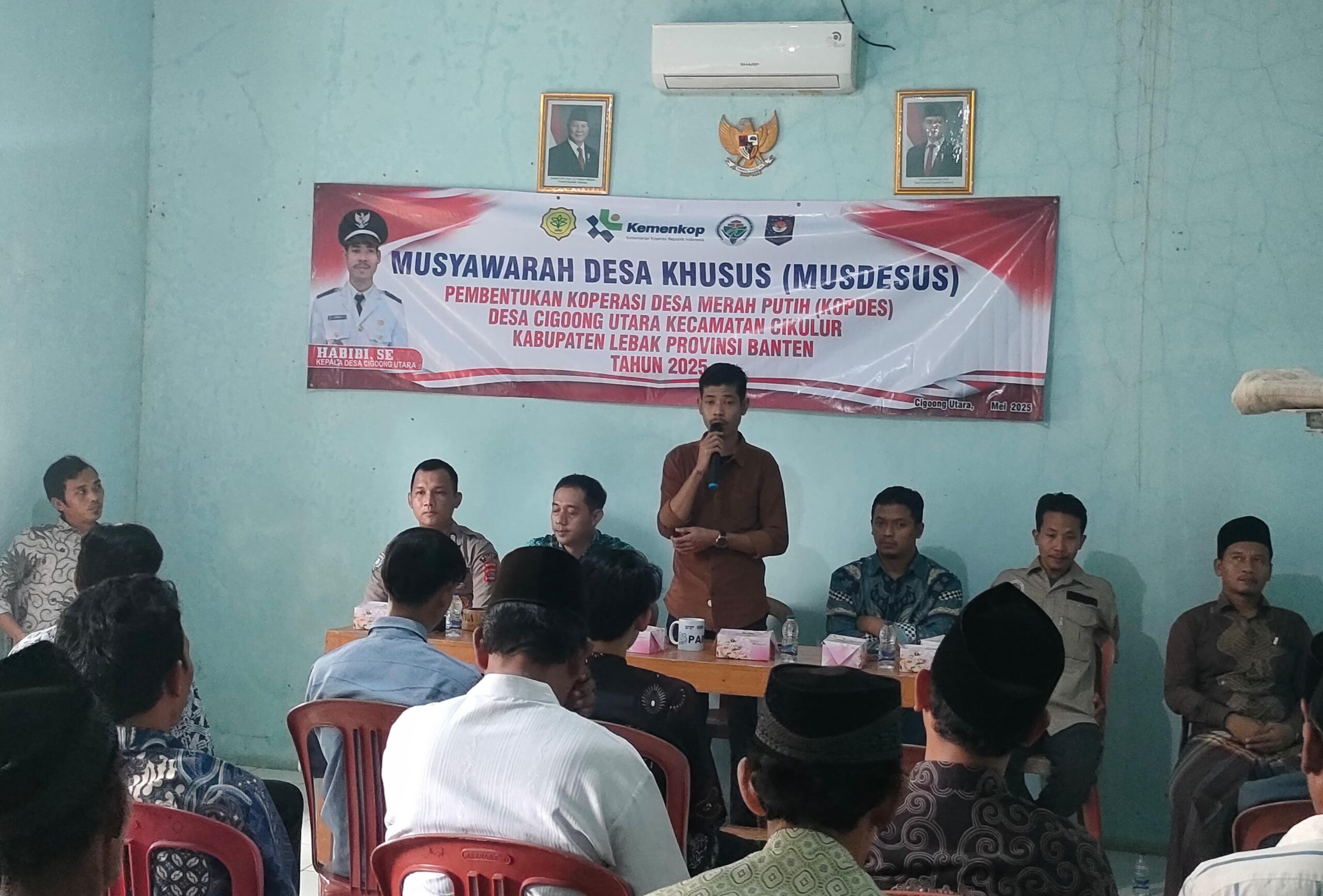 LEBAK– Sebuah langkah strategis dalam memperkuat ekonomi kerakyatan dilakukan Pemerintah Desa Cigoong Utara, Kecamatan Cikulur, dengan menggelar Musyawarah Desa Khusus (Musdesus) untuk merintis pembentukan Koperasi Desa Merah Putih, pada Kamis (22/5/2025), di balai desa setempat.