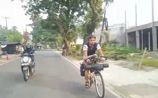 Namun, kecintaannya pada bersepeda membuatnya memilih tantangan ini, bukan karena keterbatasan ekonomi atau kehabisan tiket transportasi umum.