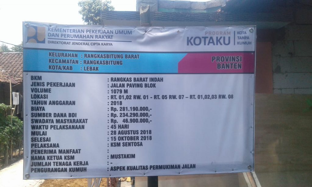 Hadirnya program Kotaku sangat membantu dalam pembangunan di wilayah Kabupaten Lebak, khususnya di beberapa wilayah pemukiman kumuh seperti di Kelurahan Rangkasbitung Barat.