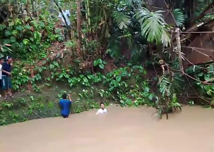 Proses evakuasi berlangsung dramatis karena arus sungai cukup deras akibat hujan yang mengguyur wilayah tersebut sejak pagi hari.