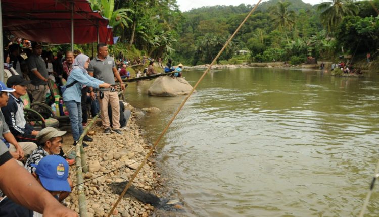 LEBAK – Bupati Lebak Iti Octavia Jayabaya menghadiri mancing bersama masyarakat Desa Hariang di Aliran Sungai Cisimeut, tepatnya di Leuwi Hariang Kp Hariang Kec. Sobang, Lebak Banten, Minggu (10/3/2019).