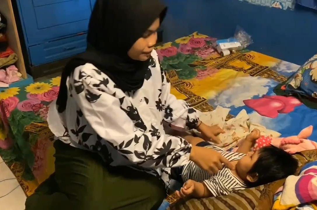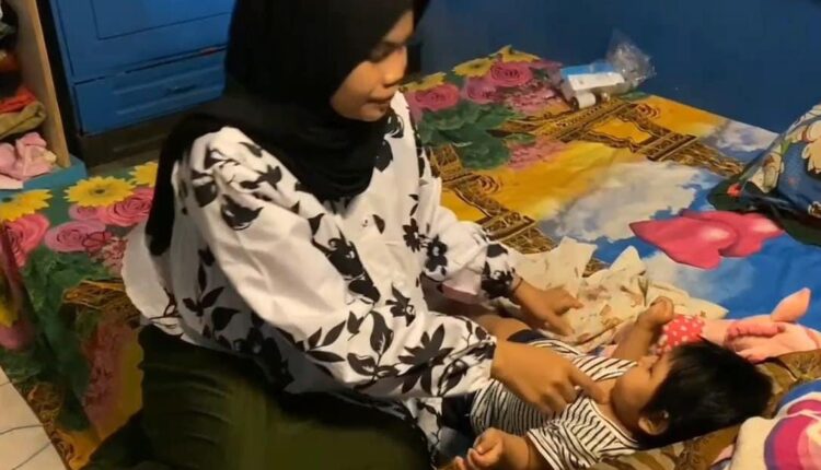 Sang ibu, Misnah (22), hampir tak pernah lepas menjaga anaknya siang dan malam. Namun, bukan hanya penyakit yang jadi beban, melainkan juga kenyataan pahit bahwa mereka hampir tak punya apa-apa.