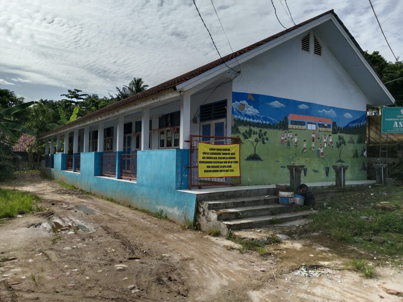 Akibatnya, gedung sekolah tersebut tersegel oleh spanduk yang bertuliskan tanah ini milik ahli waris almarhum Kyai Moch Subandi.
