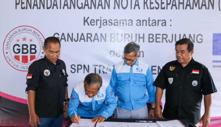 LEBAK – Ganjaran Buruh Berjuang (GBB) melakukan penandatanganan nota kesepahaman dengan Serikat Pekerja Nasional (SPN) Training Center, Desa Sangiang, Kecamatan Maja, Kabupaten Lebak, Banten, pada Rabu (15/3/2023).