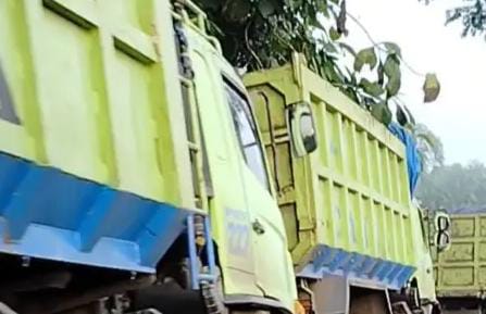 Akibatnya, truk pengangkut tanah kerap berhenti dan menunggu giliran muatan di pinggir jalan.