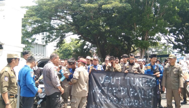 LEBAK – Sejumlah masa aksi dari anggota satpol PP dan Damkar Kabupaten Lebak menggelar aksi damai belasungkawa atas wafatnya Yadi Suryadi anggota Satpol PP Kabupaten Lebak yang tewas setelah tertimpa pagar saat bentrok dengan demonstran 23 September lalu.