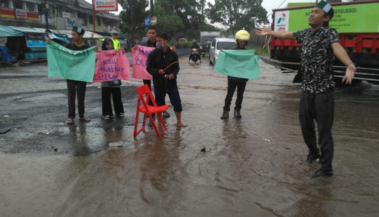 LEBAK – Sejumlah aktivis Himpunan Mahasiswa Islam – Majelis Penyelamat Organisasi (HMI-MPO) Cabang Lebak menggelar aksi unjuk rasa menuntut perbaikan jalan rusak di Jalan Raya Rangkasbitung – Pandeglang, tepatnya di bunderan Mandala, Rangkasbitung, Kabupaten Lebak, Senin (11/3).