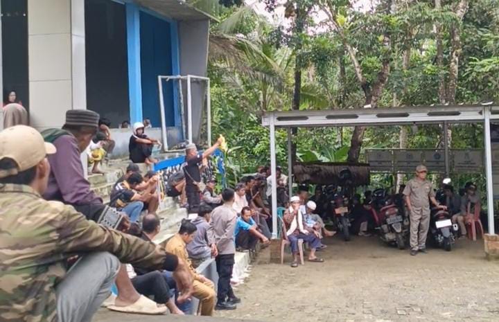 Ratusan masyarakat mendatangi kantor desa untuk menyuarakan penolakan terhadap pembangunan gerai Koperasi Merah Putih yang dinilai bermasalah karena diduga bergeser hingga menyentuh area pemakaman umum.