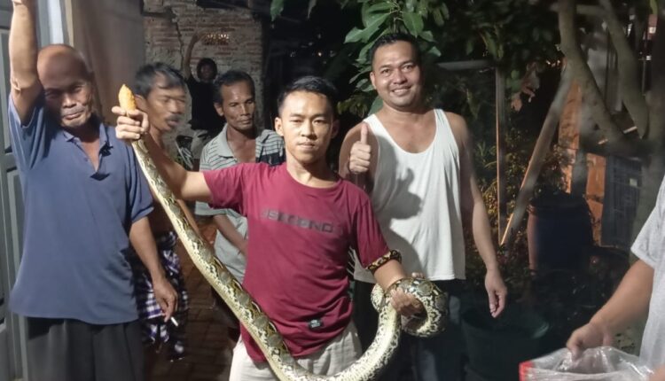 LEBAK – Seekor ular jenis sanca batik dengan ukuran berkisar 3 meter berhasil ditangkap warga Kampung Pasir BPM RT 001/RW 009, Kelurahan Muara Ciujung Timur, Kecamatan Rangkasbitung, sekira pukul 22.00 Wib, Sabtu malam, (13/4/2024).