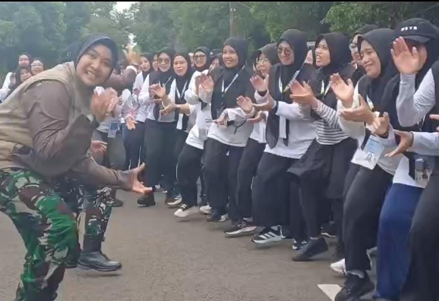 Peserta diajarkan cara bergerak dan membangun kekompakan pasukan ala militer.