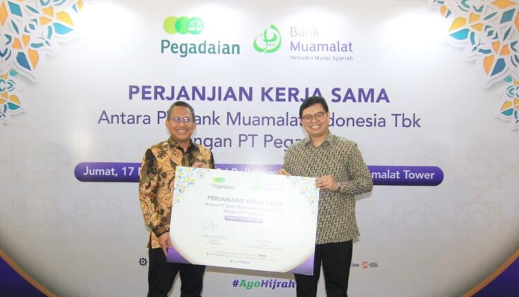 Penandatanganan perjanjian kerja sama dilakukan oleh Direktur Utama PT Bank Muamalat Indonesia Tbk Indra Falatehan dan Direktur Utama PT Pegadaian Damar Latri Setiawan pada Jumat, 17 November 2023 di Muamalat Tower, Jakarta.