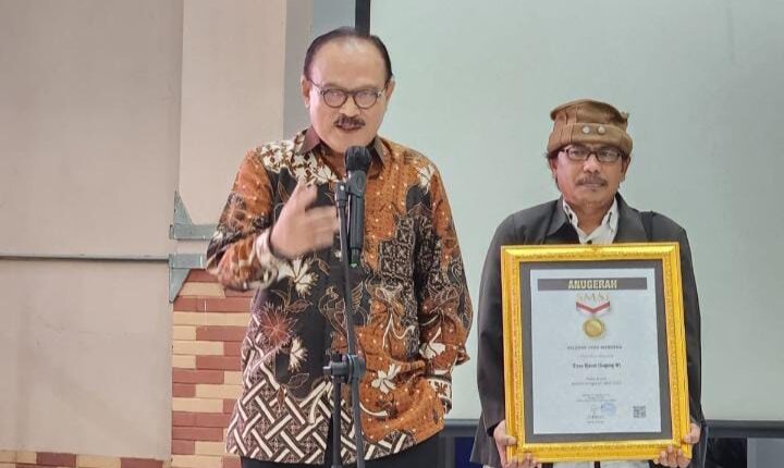 Penyerahan anugerah SMSI itu diserahkan langsung oleh Ketua Umum SMSI Pusat Firdaus kepada Eros Jarot.