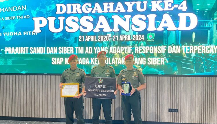 JAKARTA – Komando Pasukan Khusus (Kopassus) kembali menunjukkan kemampuannya dalam bidang keamanan siber. Tim dari Grup 1 Kopassus berhasil meraih juara ke-3 pada Lomba Waskita Siber Tanggap yang diselenggarakan oleh Pussansiad dalam rangka HUT Pussansiad ke-4.