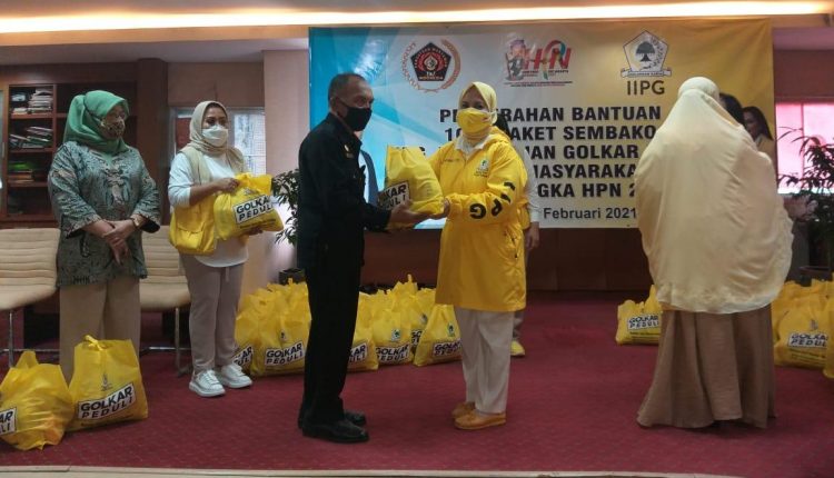 JAKARTA – Persatuan Wartawan Indonesia (PWI) Peduli mendapat bantuan 1.000 paket kebutuhan pokok/sembako dari Ikatan Istri Partai Golkar (IIPG), Jumat (5/2/2021).