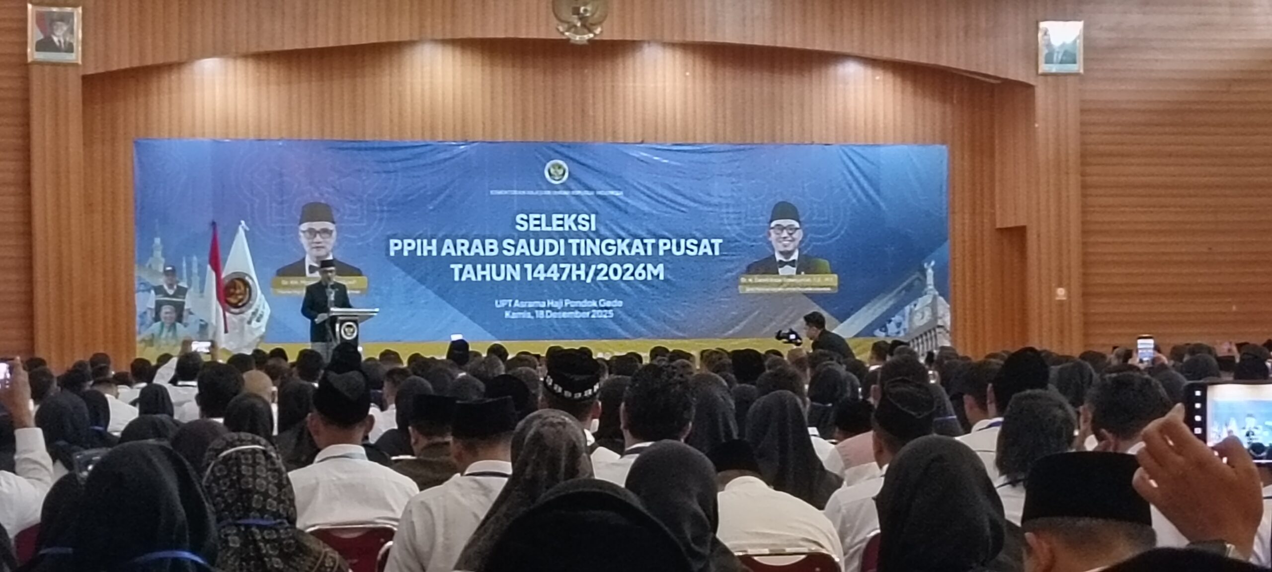 JAKARTA – Seleksi Petugas Penyelenggaraan Ibadah Haji (PPIH) Arab Saudi tingkat Pusat Tahun 1447 H/2026 M berlangsung di Asrama Haji Pondok Gede Jakarta, Kamis (18/12/2025) dan dibuka secara resmi oleh Menteri Haji dan Umroh RI, KH Mochamad Irfan Yusuf Hasyim.