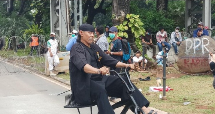 Naik Sepeda Berjok Paku, Abah Zaini Dari Lebak Ikut Aksi Tolak Omnibus Law