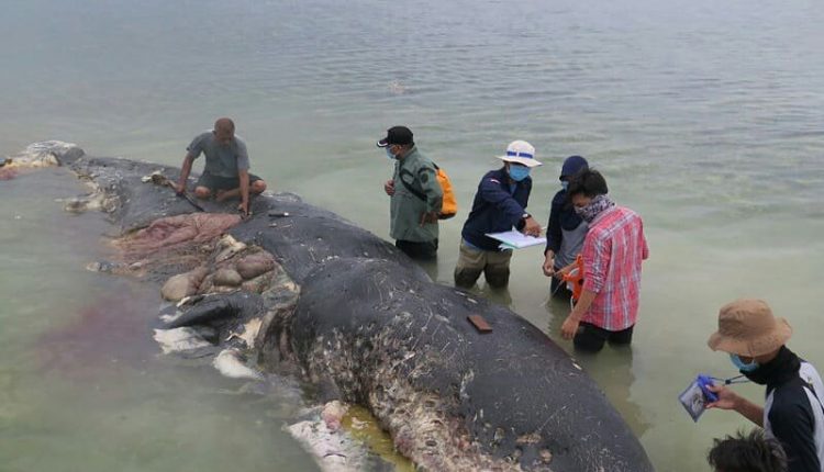 NASIONAL – Seekor paus sperma (physeter macrosepalus) ditemukan membusuk di Pulau Wata, Wakatobi Sulawesi Tenggara, Minggu (18/11/2018).