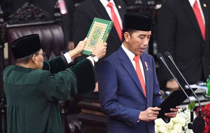 JAKARTA – Joko Widodo dan Ma’ruf Amin resmi menjadi Presiden dan Wakil Presiden Indonesia periode 2019-2024 setelah menyelesaikan seremoni pelantikan di Gedung MPR, Jakarta, Minggu (20/10).