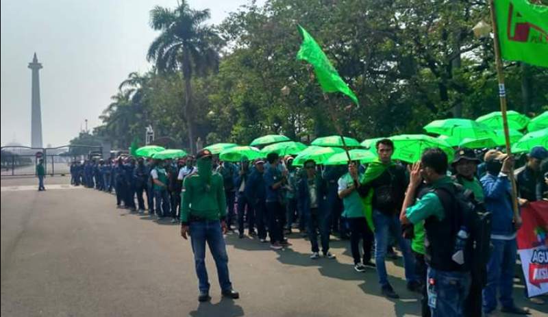 Demo buruh besar-besaran ini juga digelar di beberapa kota di Indonesia.