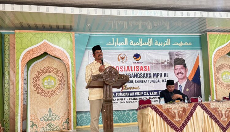 SERANG – Anggota MPR RI Prof. Dr. Ir. H. Furtasan Ali Yusuf, SE, S.Kom, MM melaksanakan kegiatan Sosialisasi Empat Pilar MPR RI di Pondok Pesantren Al Mubarok, Kota Serang, Banten, pada Rabu (30/7). Kegiatan ini dihadiri oleh para guru, orang tua wali siswa, serta santri dari berbagai tingkatan pendidikan.