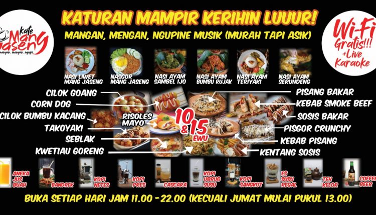 Kemarin, Minggu 14 Maret 2021, adalah tepat sebulan Kafe Mang Jaseng (KMJ) beroperasi. Jika hasil performa seluruh kru dinilai, rapornya memang jauh dari gemilang. Tapi menilik kondisi yang masih dilanda dampak pandemi Covid 19 seperti sekarang, apa yang kami lakukan dan peroleh sebulan kemarin rasanya amat patut bahkan wajib disyukuri.