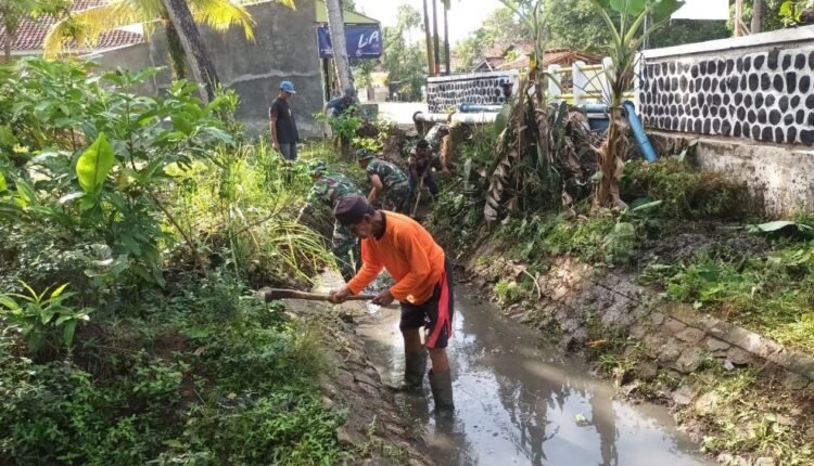 Antisipasi Banjir, Koramil 0111/Pagelaran Ajak Warga Gotong Royong Bersihkan Saluran Sungai