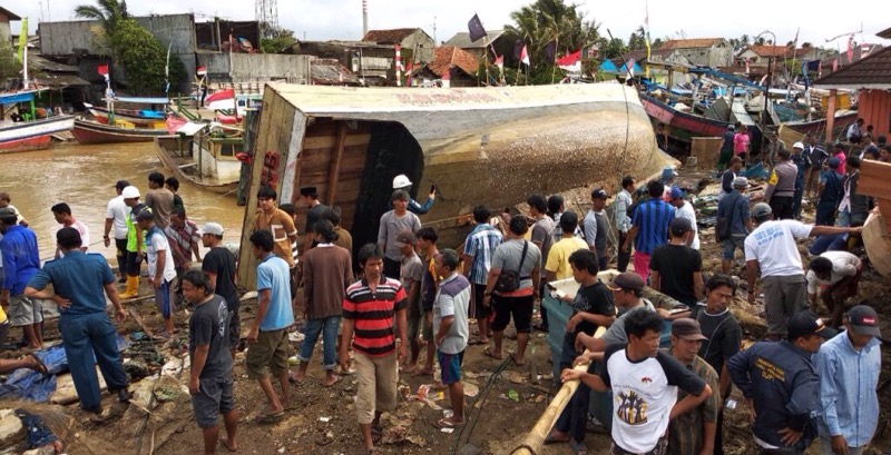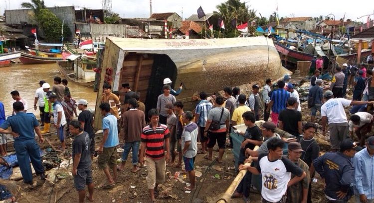 PANDEGLANG – Bangkai kapal nelayan Labuan, Kecamatan Labuan, Kabupaten Pandeglang yang karam akibat dihantam oleh bencana tsunami beberapa waktu lalu di muara sungai Cipunten Agung, mulai dilakukan evakuasi oleh masyarakat serta sejumlah pihak lainnya, mulai dari anggota Polres Pandeglang, Syahbandar serta tim evakuasi yang lain.