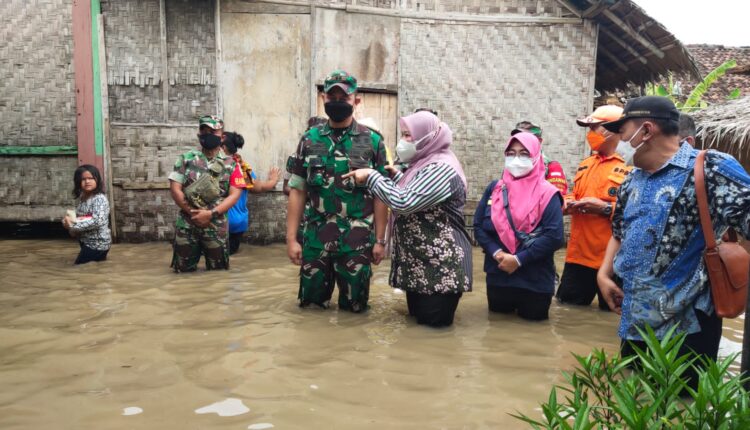 PANDEGLANG – Komandan Kodim 0601/Pandeglang Letkol Inf Jani Setiadi bersama Bupati Pandeglang Irna Narulita, melakukan peninjauan langsung ke lokasi banjir di Desa Surianeun, Kecamatan Patia, Jum’at (04/03/22)