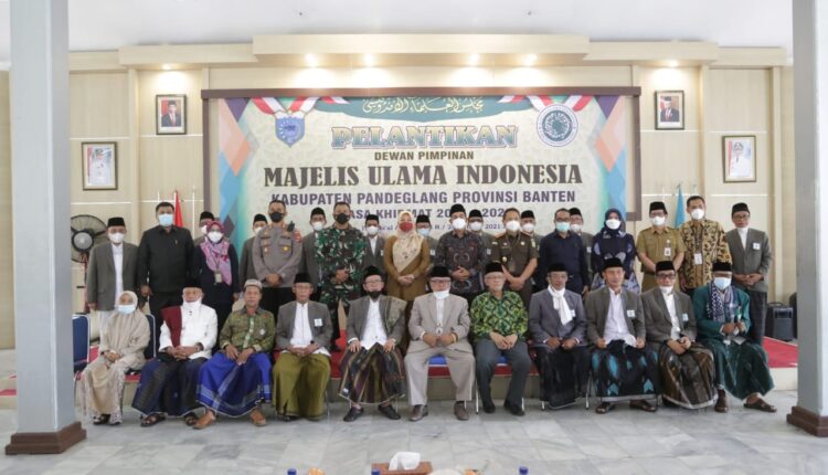 PANDEGLANG – Ketua Majelis Ulama Indonesia (MUI) Pandeglang masa khidmat 2021-2026 K.H Hamdi Ma’ani mengatakan, program kerja yang akan digalakan pada tahun pertama yakni pembinaan umat, selain itu MUI masih banyak pekerjaan rumah (PR) terutama pembinaan masyarakat baik dari Aqidah, Akhlak dan Syariah. Demikian dikatakannya dalam acara pelantikan Pengurus MUI Pandeglang di Gedung Pendopo Bupati, Senin, (25/10/2021)
