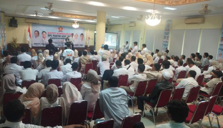 PANDEGLANG – Dewan Pimpinan Cabang (DPC) Partai Gerakan Indonesia Raya (Gerindra) Kabupaten Pandeglang menggelar rapat konsolidasi pemenangan untuk pemilihan kepala daerah (Pilkada) 2024, di salah satu hotel di Pandeglang, Sabtu (24/8/2024).