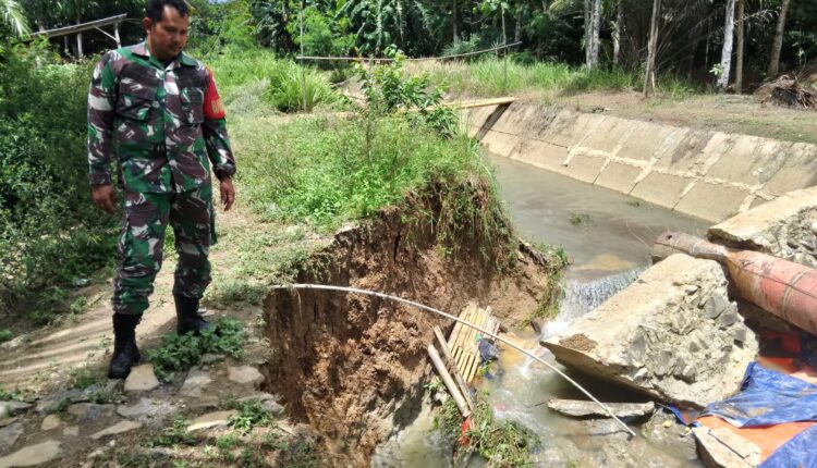 Dia menjelaskan, panjang kerusakan irigasi ini hampir sekitar 50 meter dengan lebar tiga meter, kerusakan ini juga mengancam ambrolnya jalan desa serta merupakan pesawahan para petani karena airnya mengalir tidak beraturan.