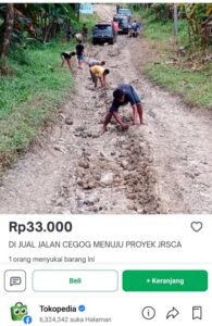 “Untuk jalan Erjeruk-Cegog masuk jalan kabupaten. Belum ada informasi terkait pembangunan, karena setiap tahun sudah diusulkan. Kalau dijual di tokopedia, mungkin bentuk kemarahan warga saja,” katanya.