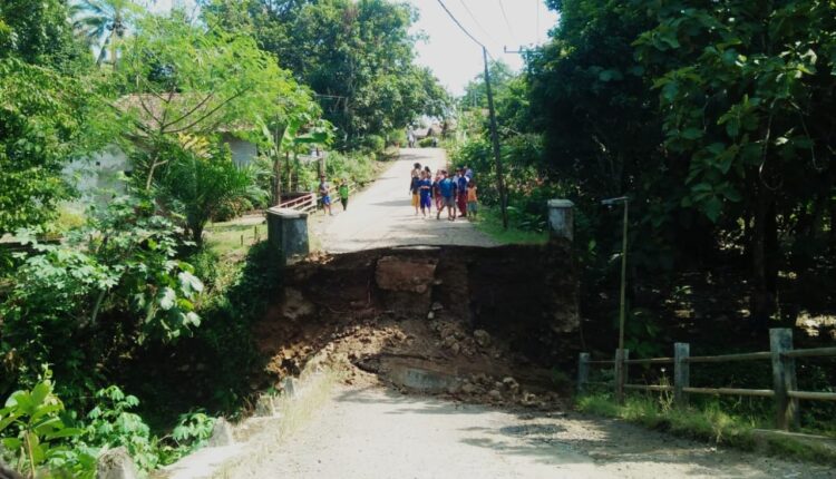Jembatan Penghubung Antar Desa di Cigeulis Pandeglang Ambrol