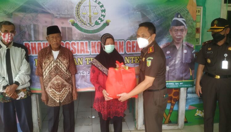PANDEGLANG – Kejaksaan Tinggi (Kejati) Banten menyalurkan bantuan bingkisan paket sembako untuk korban gempa bumi Banten di Desa Sukajadi, Kecamatan Carita dan kantor BPBDPK Pandeglang, Kamis (20/1/2022)