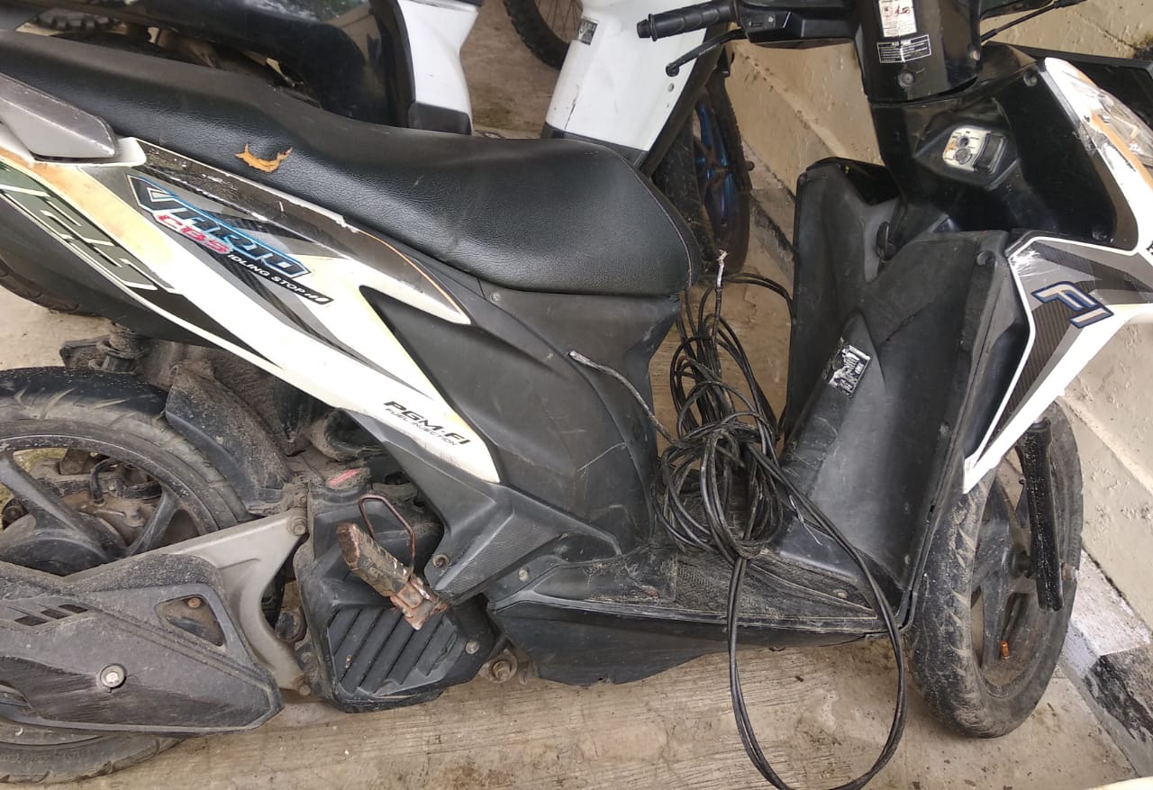 Tidak hanya itu, Kapolsek Cikedal juga mengamankan 1 unit kendaraan Roda 2 (Dua) Tipe Honda Vario 125 CC berwarna putih dengan Nopol A 5557 LW, 1 buah kunci kendaraan Roda 2 (Dua) Tipe Honda Vario 125 CC dan sebuah kabel yang melilit di bagian ban belakang kendaraan.